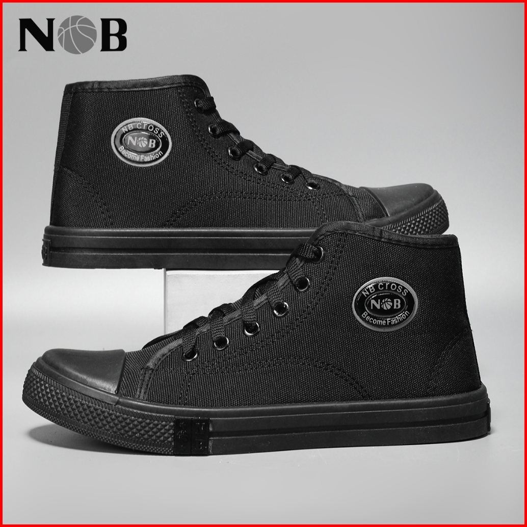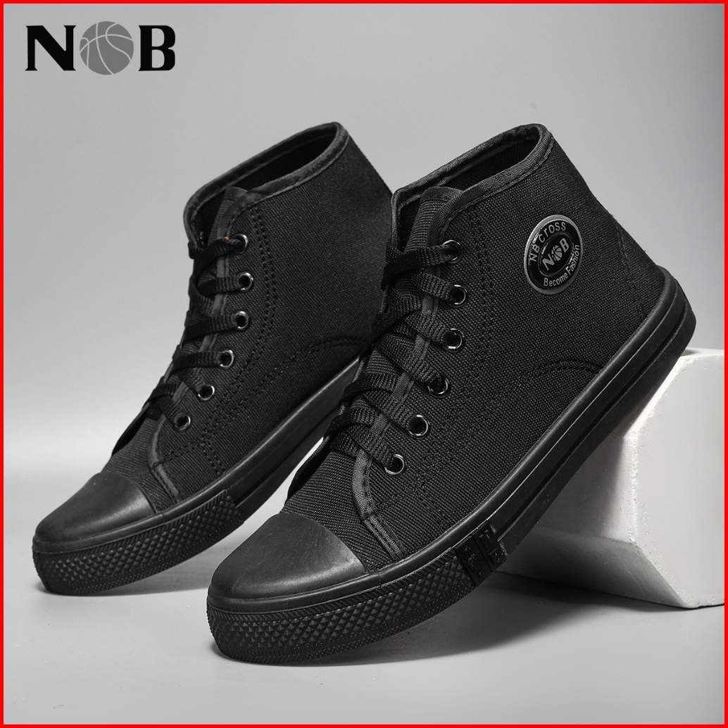 Nob Sepatu Pria Sneakers Sport Black Korean Style Sekolah Sepatu Sekolah Hitam Polos