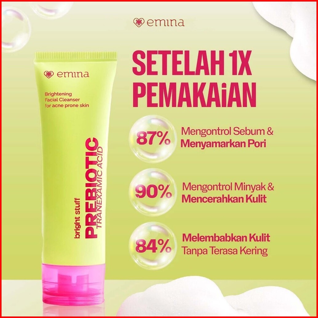Emina Prebiotic Tranexamic Acid Brightening Face Wash 50ml 100ml Moisturizing Cream 20ml