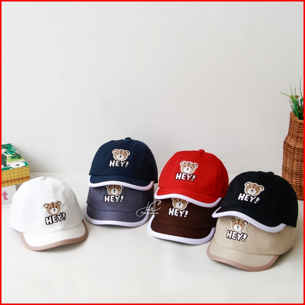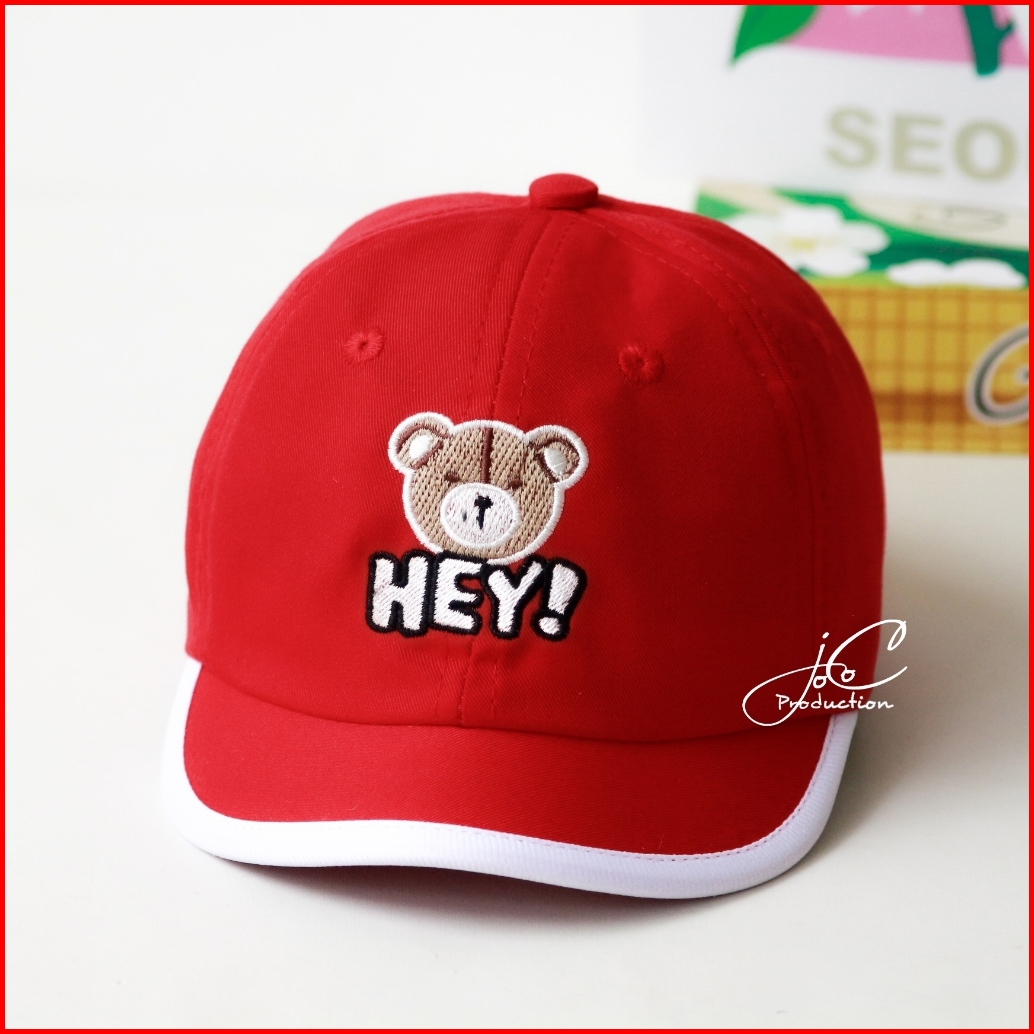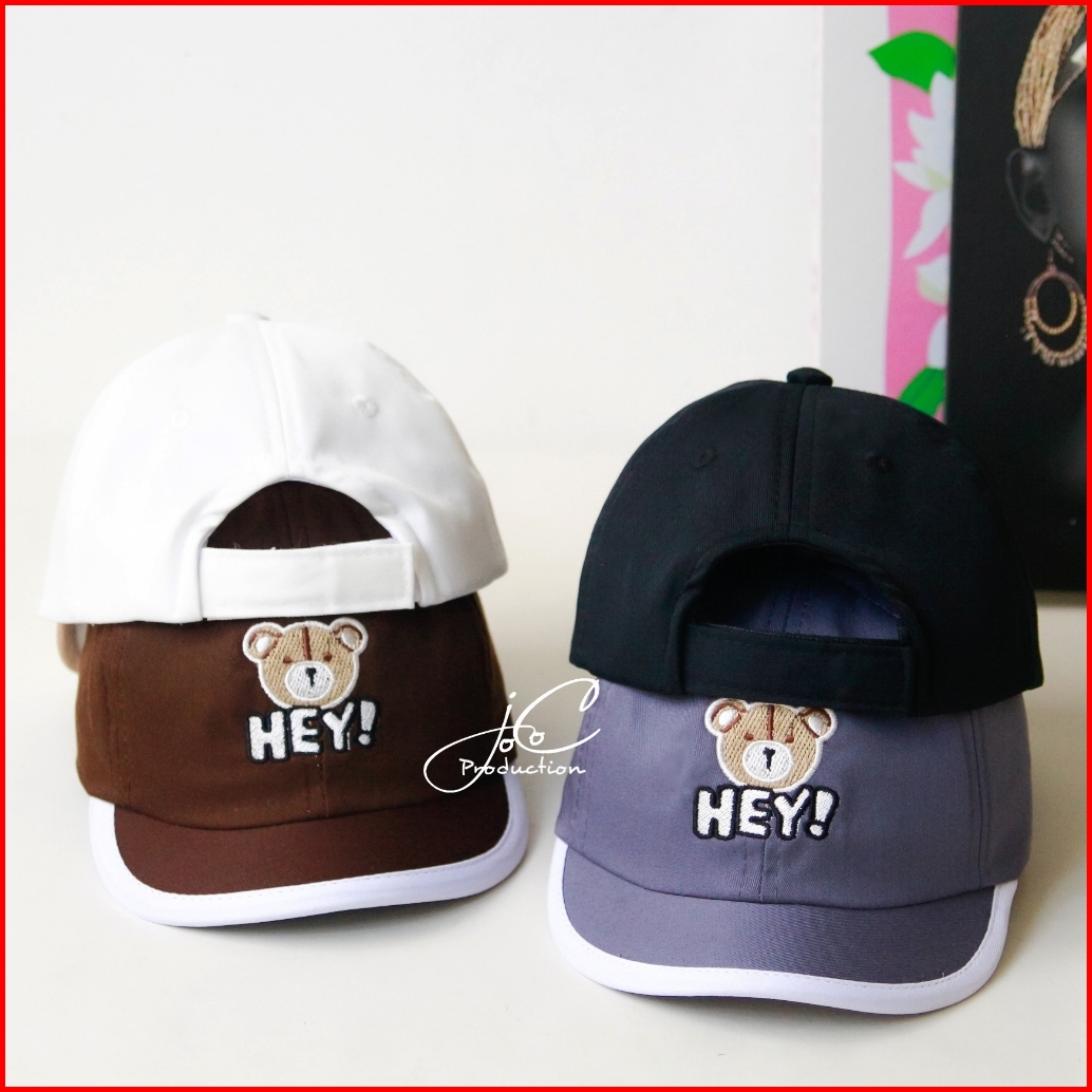 Jocoproduction - Topi Anak Baseball 1-3 Thn Sinpen Kualitas Ekspor Motif Bordir Bear Hey