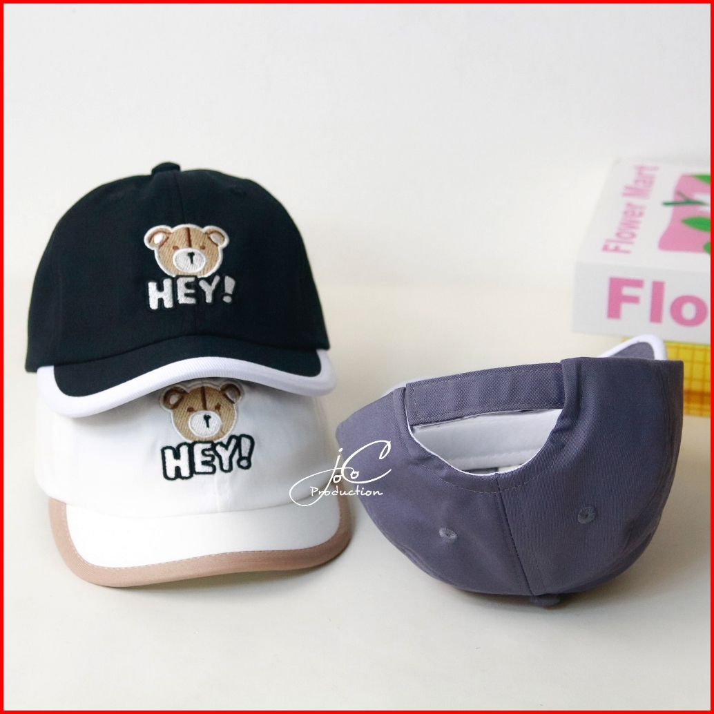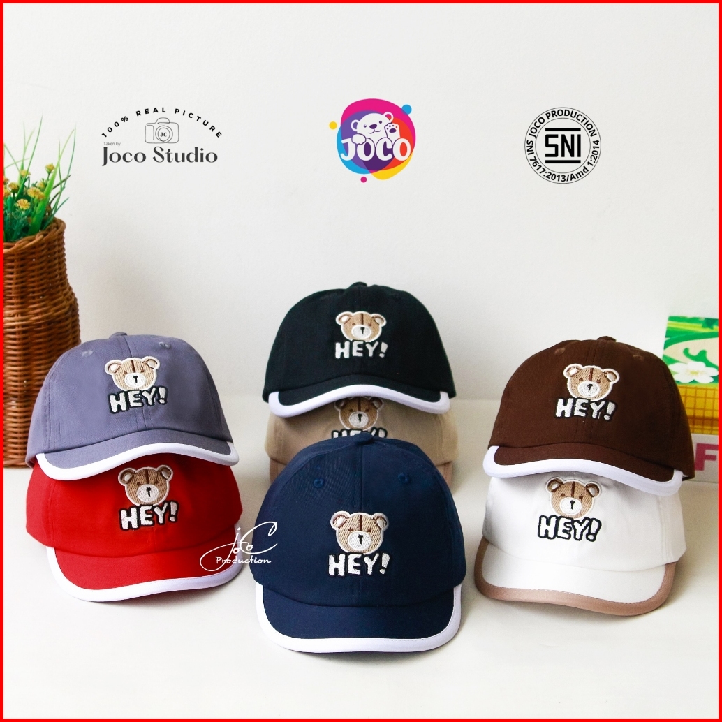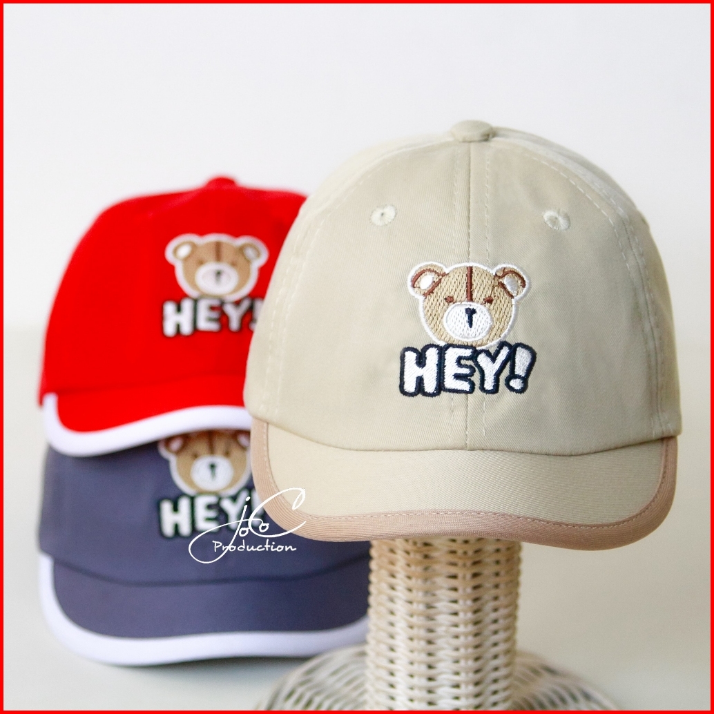 Jocoproduction - Topi Anak Baseball 1-3 Thn Sinpen Kualitas Ekspor Motif Bordir Bear Hey