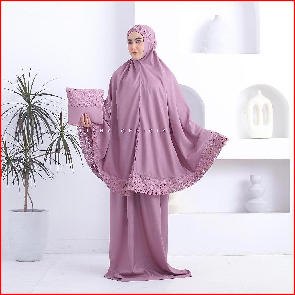 Mukena Khadijah Mukena Dewasa Polos Jumbo Bordir Katun Premium Traveling Free Tas Pouch By Kalishaofficial