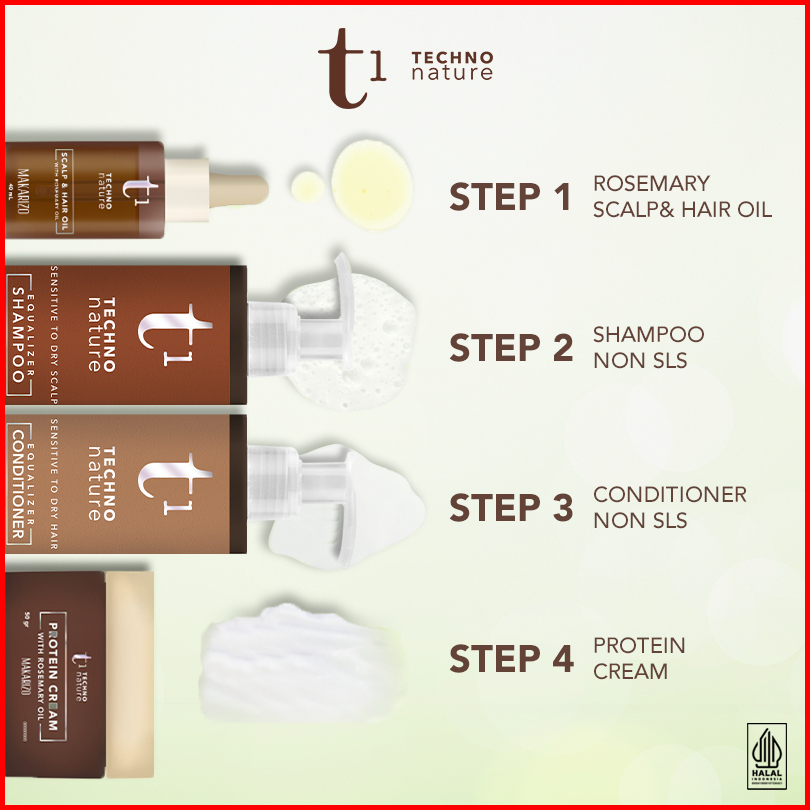 Complete Package Anti Ngembang T1 Techno Nature Rosemary Oil Shampoo Conditioner Protein Cream