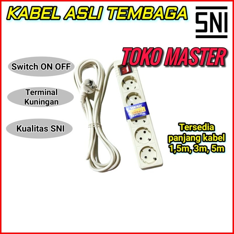 Stop Kontak Colokan Kabel Tembaga Kuningan Sni Sunfree Jupiter 1 5 - 3 - 5meter 2 - 3 - 4 - 5 Lubang