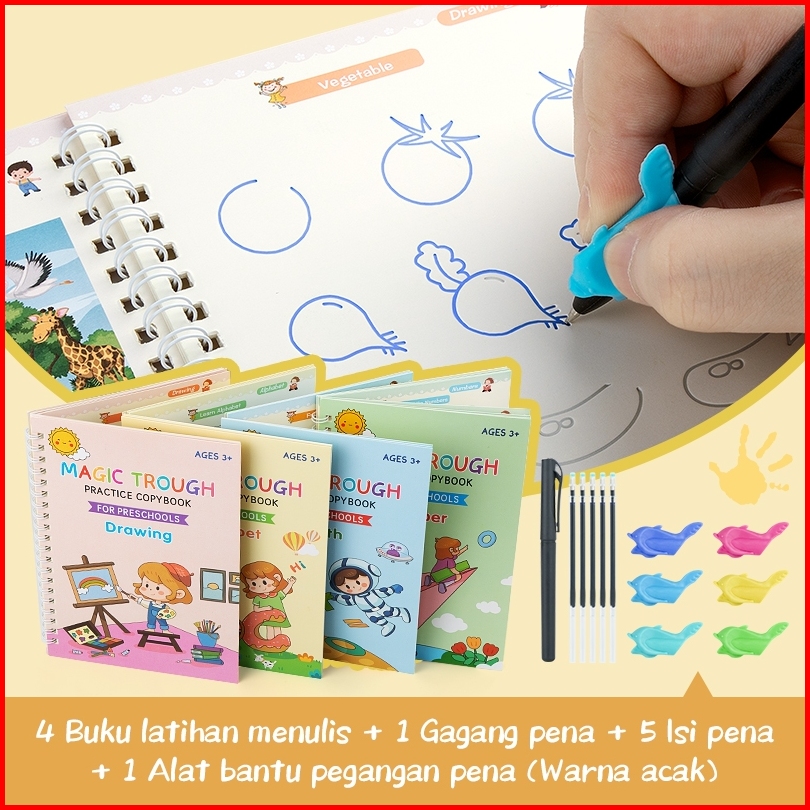 Aimilo - Magic Practice Book Isi 4pcs Latihan Menulis Anak Tk Tinta Akan Hilang Secara Otomatis Bisa Dipraktekkan Berula
