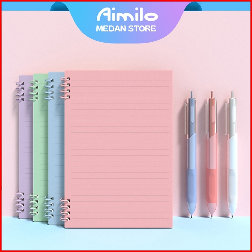 Aimilo - Notebook Set Notebook A5 Pulpen Gel Buku Diary Aesthetic 4 Warna Sekolah Stationary
