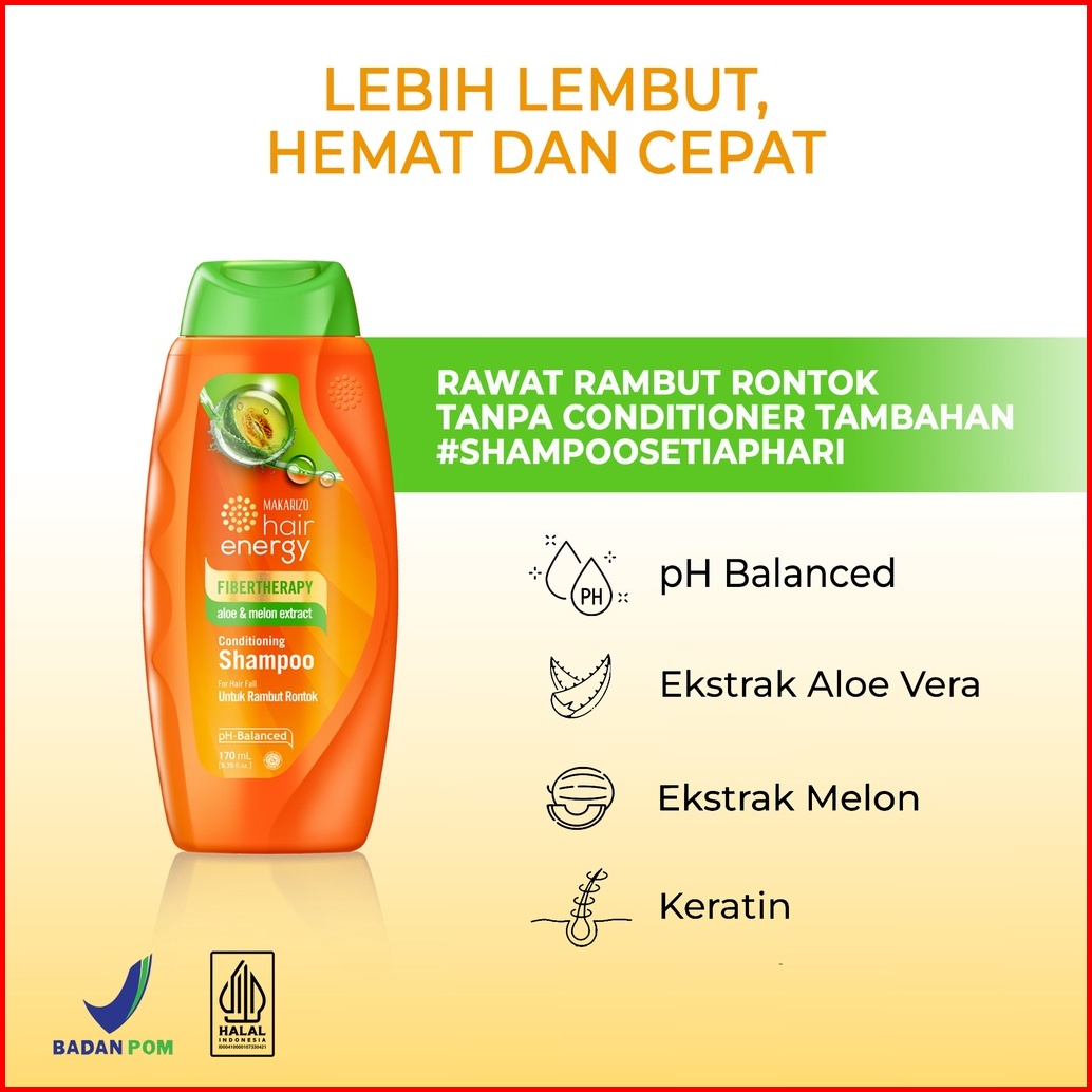 Paket Isi 2 - Makarizo Hair Energy Fibertherapy Conditioning Shampoo Aloe Melon 170ml