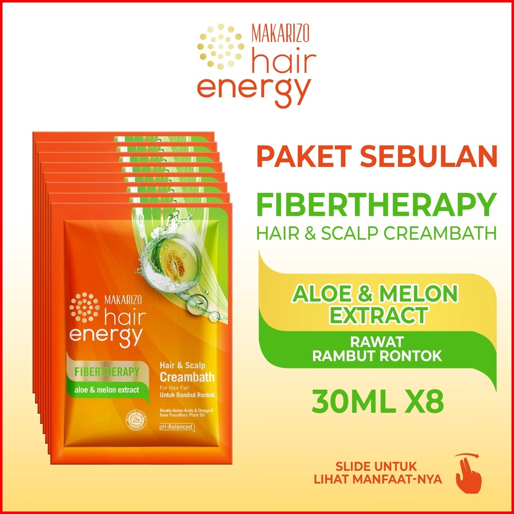 Paket Sebulan - Makarizo Hair Energy Fibertherapy Hair Scalp Creambath Aloe Melon 30 Ml X8