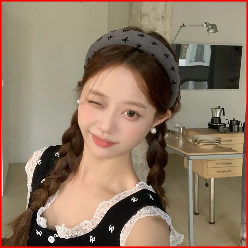 Bando Busa Fashion Korea Motif Pita Coquette Love Bandana Aksesoris Rambut Wanita Mco Ar322