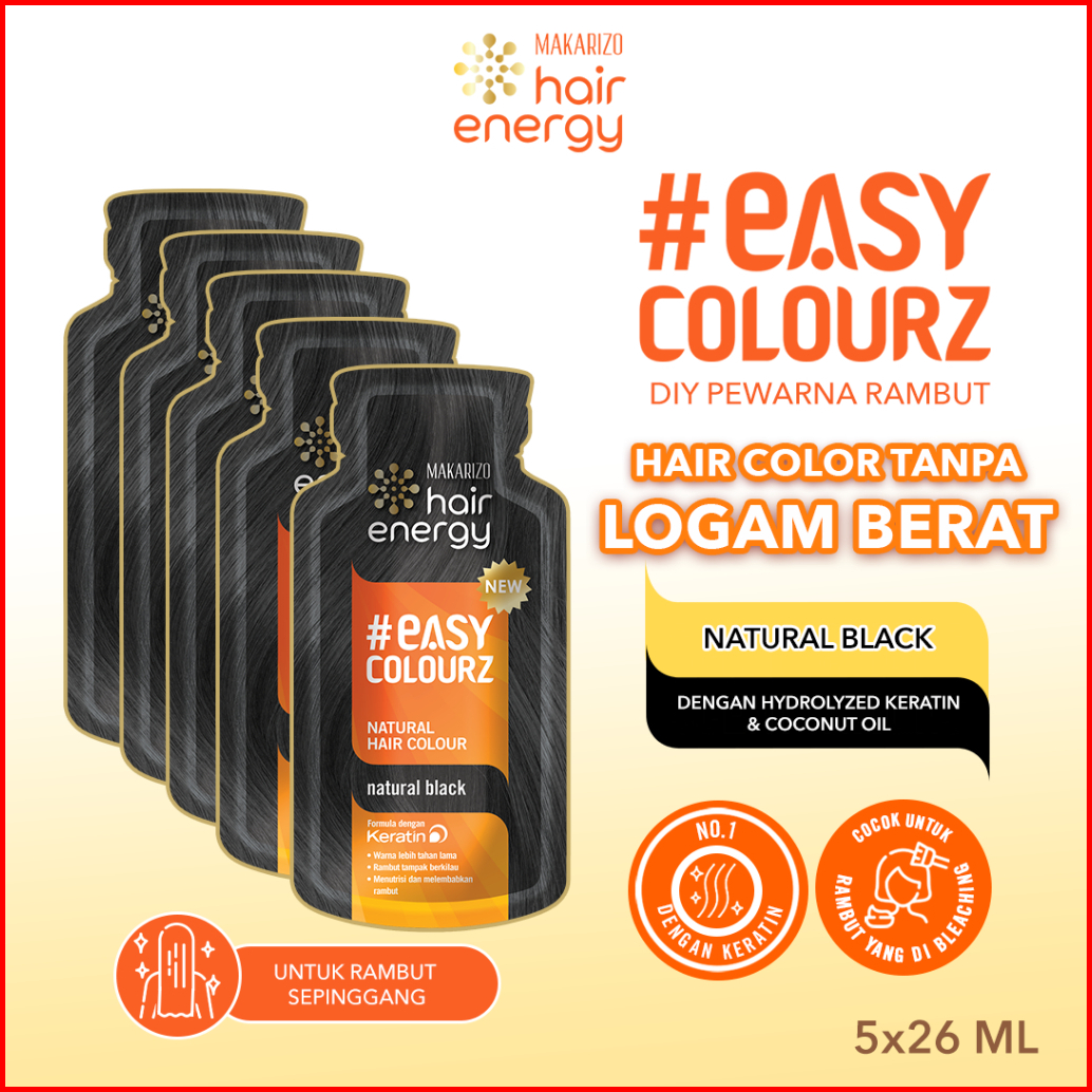 Bundle Isi 5 - Makarizo Hair Energy Easy Colourz 26 Ml - Natural Black - Hair Color - Pewarna Rambut