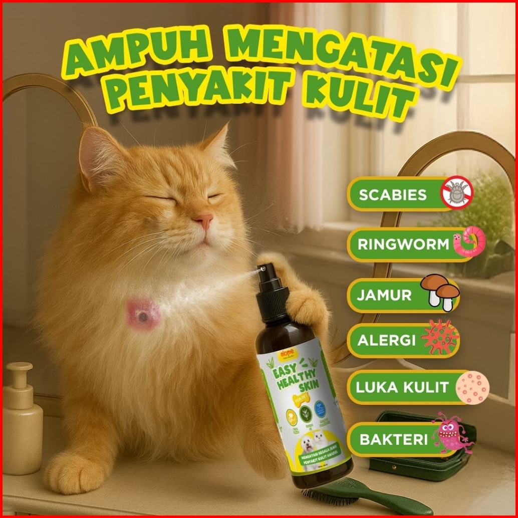 Elope Obat Spray Penyakit Kulit Jamur Luka Infeksi Ringworm Scabies Kucing Anjing Easy Healthyskin
