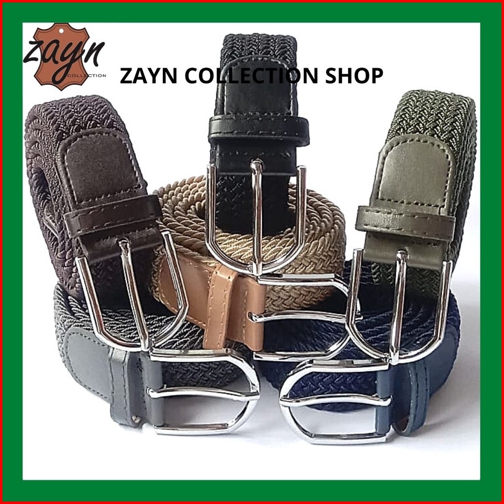 Ikat Pinggang Pria Panjang Karet Texan Elastis Gesper Cewek Jalinan Anyaman Rajut Kepang