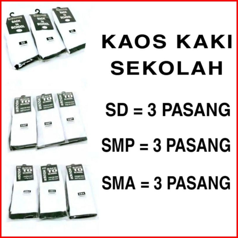 Paket 3 Pasang Kaoskaki Sekolah Panjang Kaoskaki Hitam Putih Sd Smp Sma