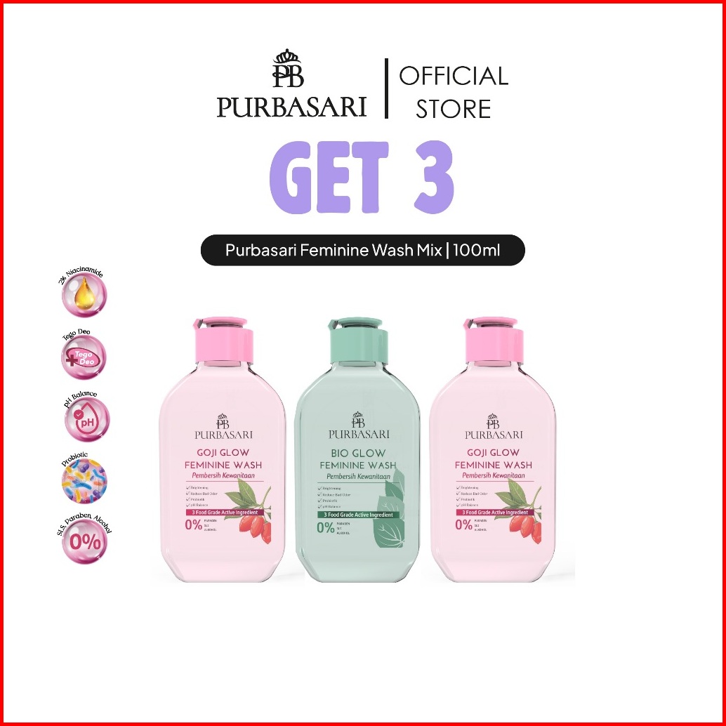 Get 3 Purbasari Feminine Wash Mix 100ml X 3 Pcs