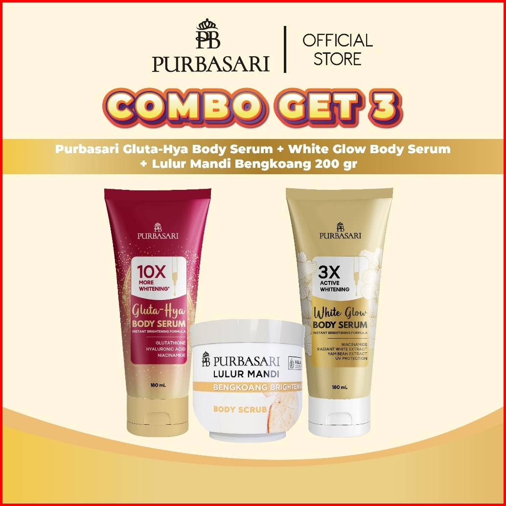 Combo Super Purbasari Body Serum 180ml Gluta Hya White Glow Dan Purbasari Lulur Mandi Bengkoang 200 Gr
