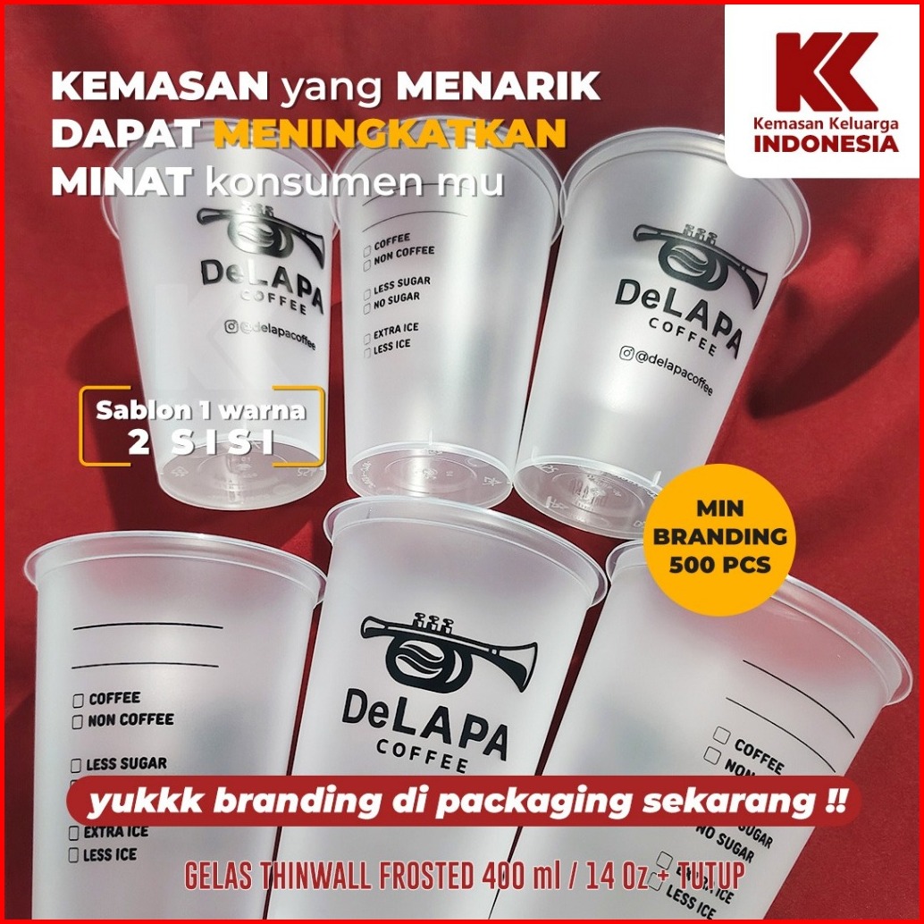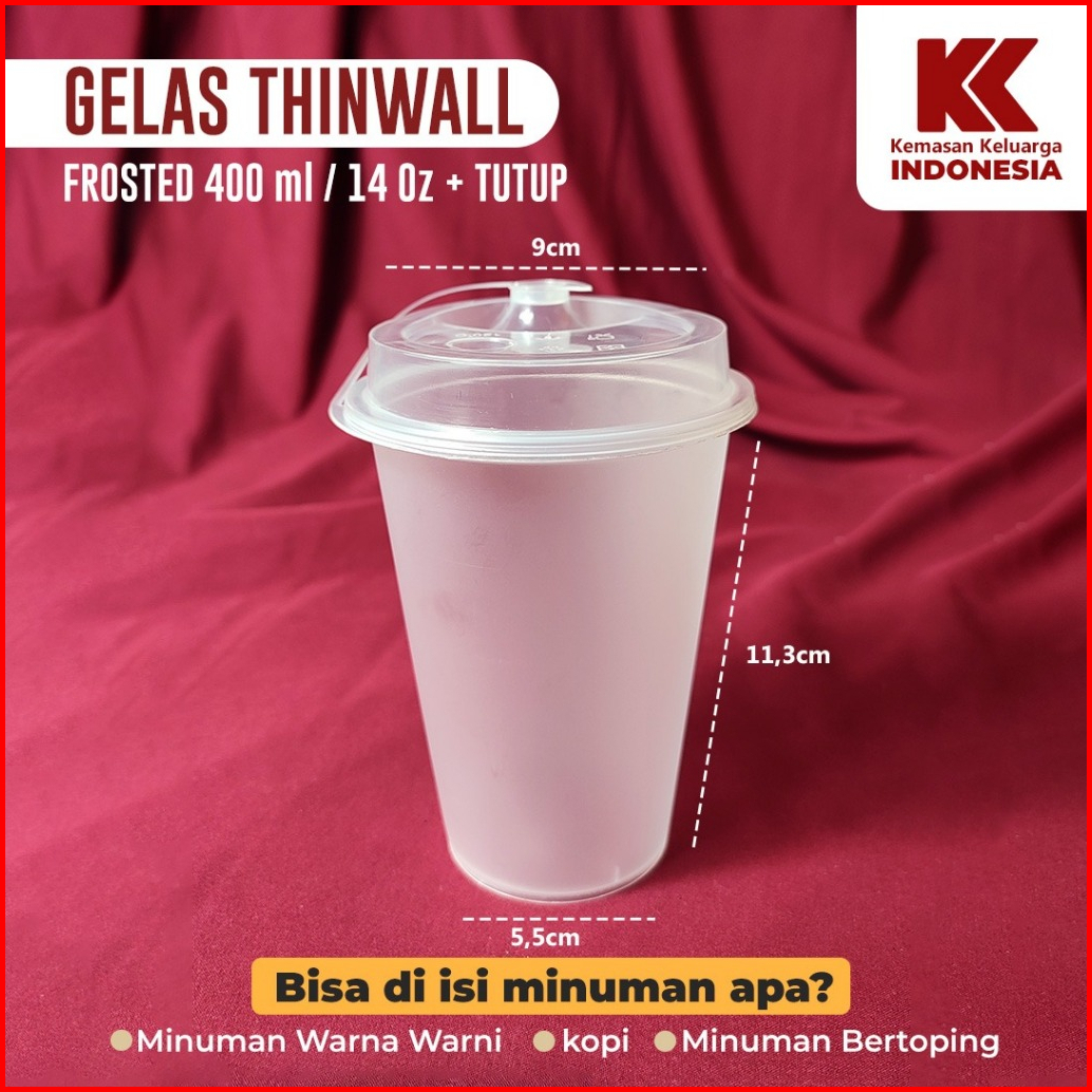 Cup Injection 14oz 400ml Frosted Tutup Gelas Thinwall Gelas Inject Gelas Fore Gelas Ban Ban 25pcs