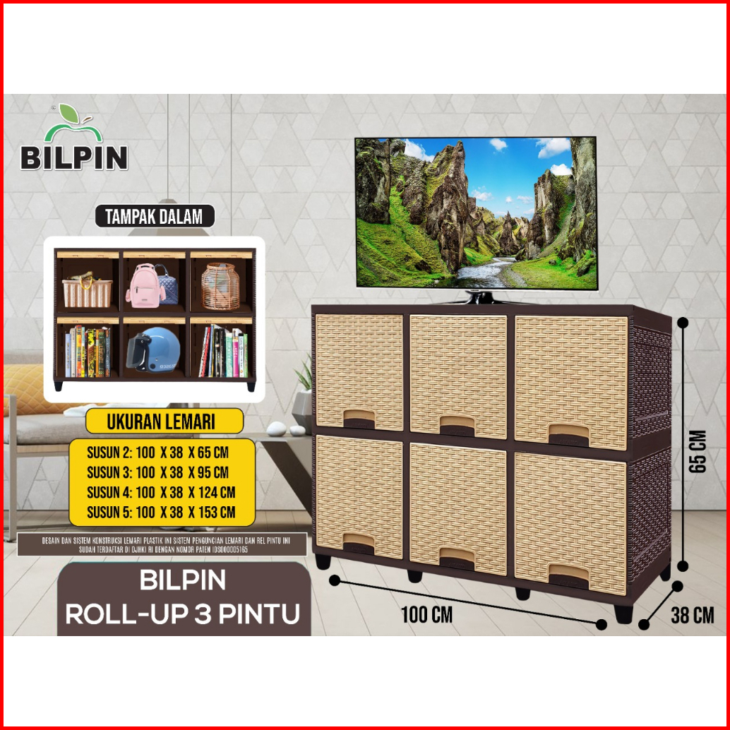Lemari Plastik Akako Bilpin Rollup Pintu Sliding 6 Pintu Susun 2 Rak Tv Akako