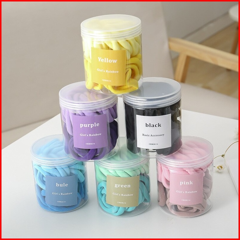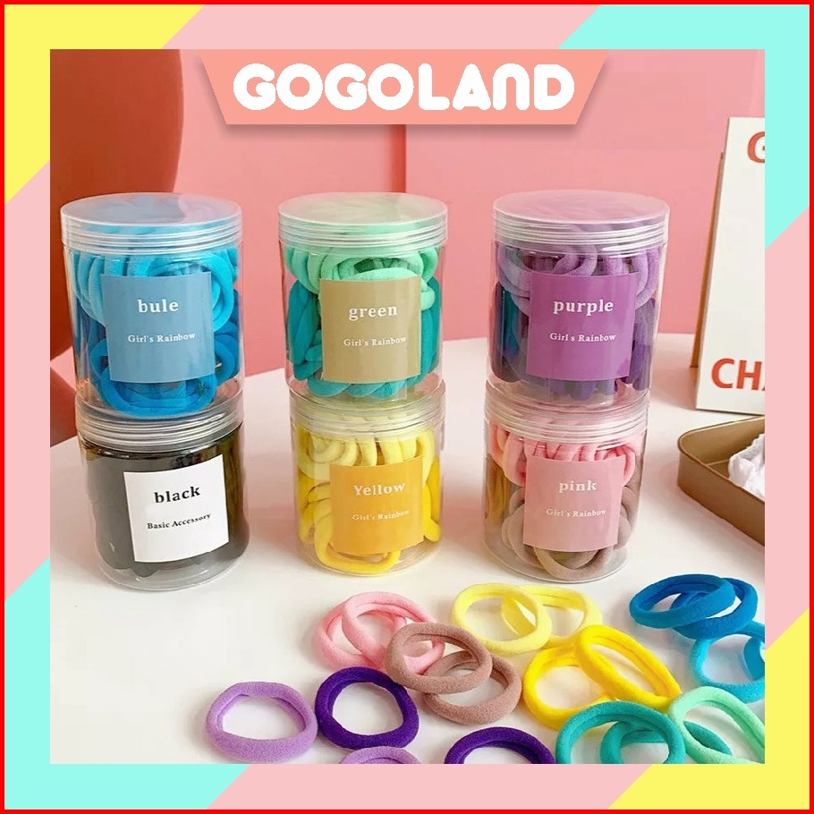 Gogoland Ikat Rambut Ponytail Elastis Wanita Polos Kuncir Ala Korea Toples Plastik Isi 50pcs R612 R613