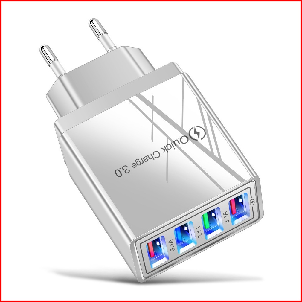 Adapter Charger 5v 3.1a 4 Port Usb Quick Charging Fast Charging Pengisian Daya Cepat Lampu Led
