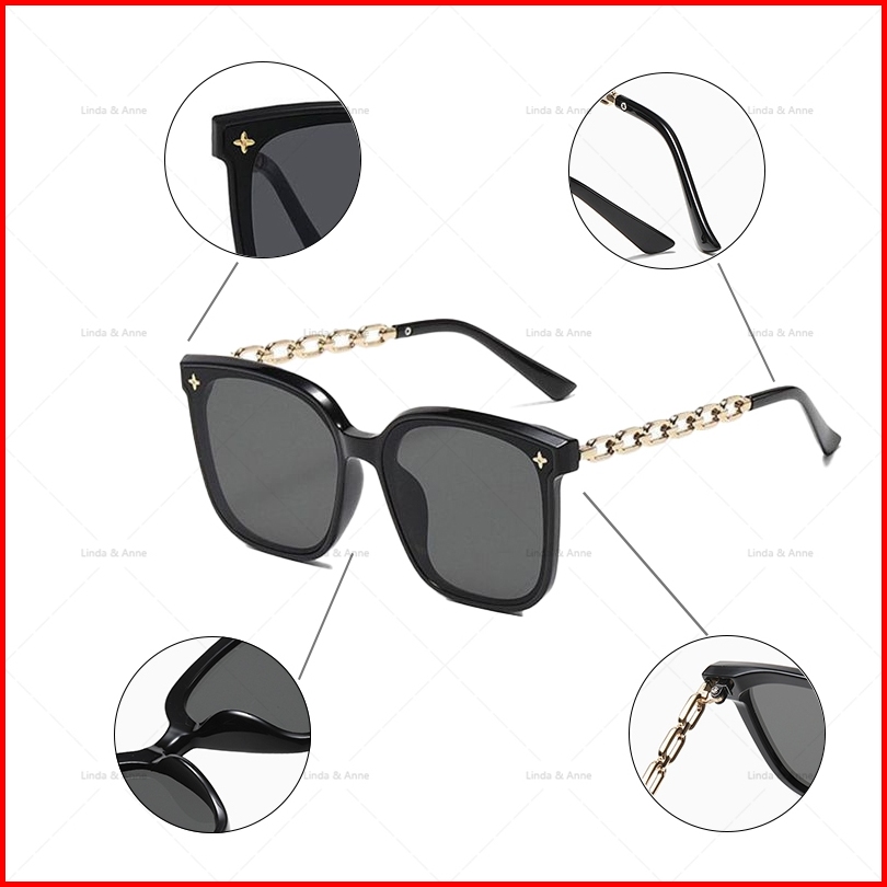 Terbaru Kacamata Hitam Wanita Frame Model Rantai Logam Plastik Oversized Women Sunglasses Chain Frame Mode Fashion Ootd