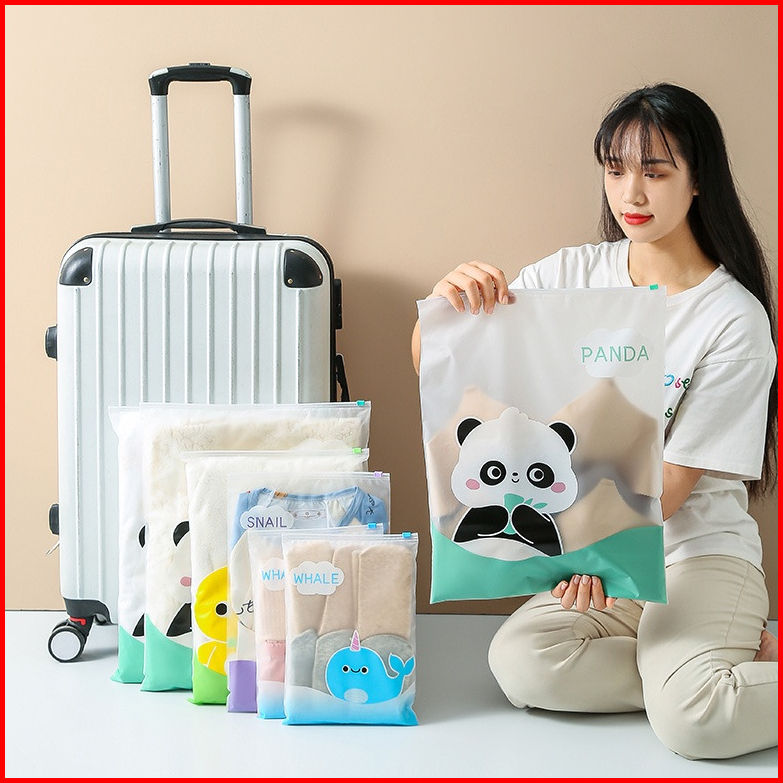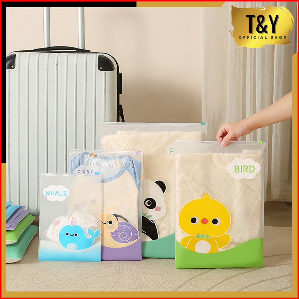 T Y Ziplock Travel Karakter Hewan Panda Lucu Pouch Penyimpanan Serbaguna Zipper Bag Motif Panda Hiu Siput Packaging Stor