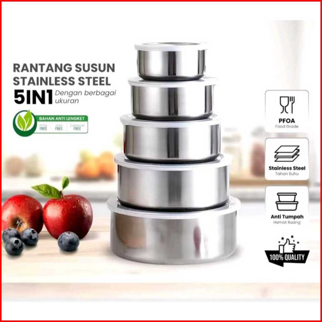 Rantang 5 Susun Stainless Steel Fresh Box Satu Set Rantang 5in1 Tempat Penyimpanan Makanan Lauk