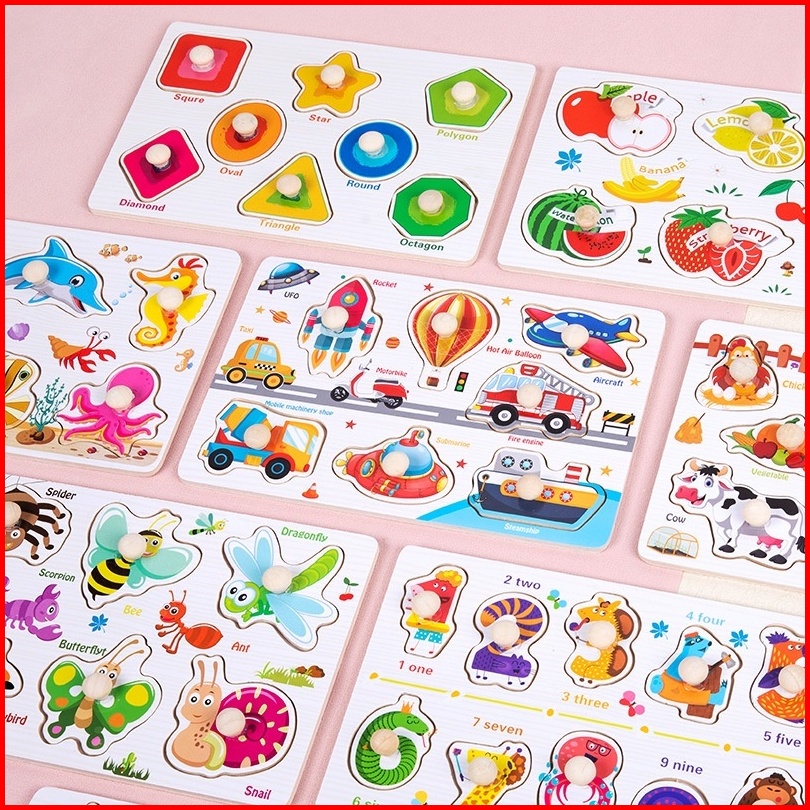 T Y Wooden Puzzle Gagang Knop Kayu Karakter Lucu Mainan Anak Puzzle Knob Kayu Jigsaw Mainan Edukatif Edukasi Bergambar