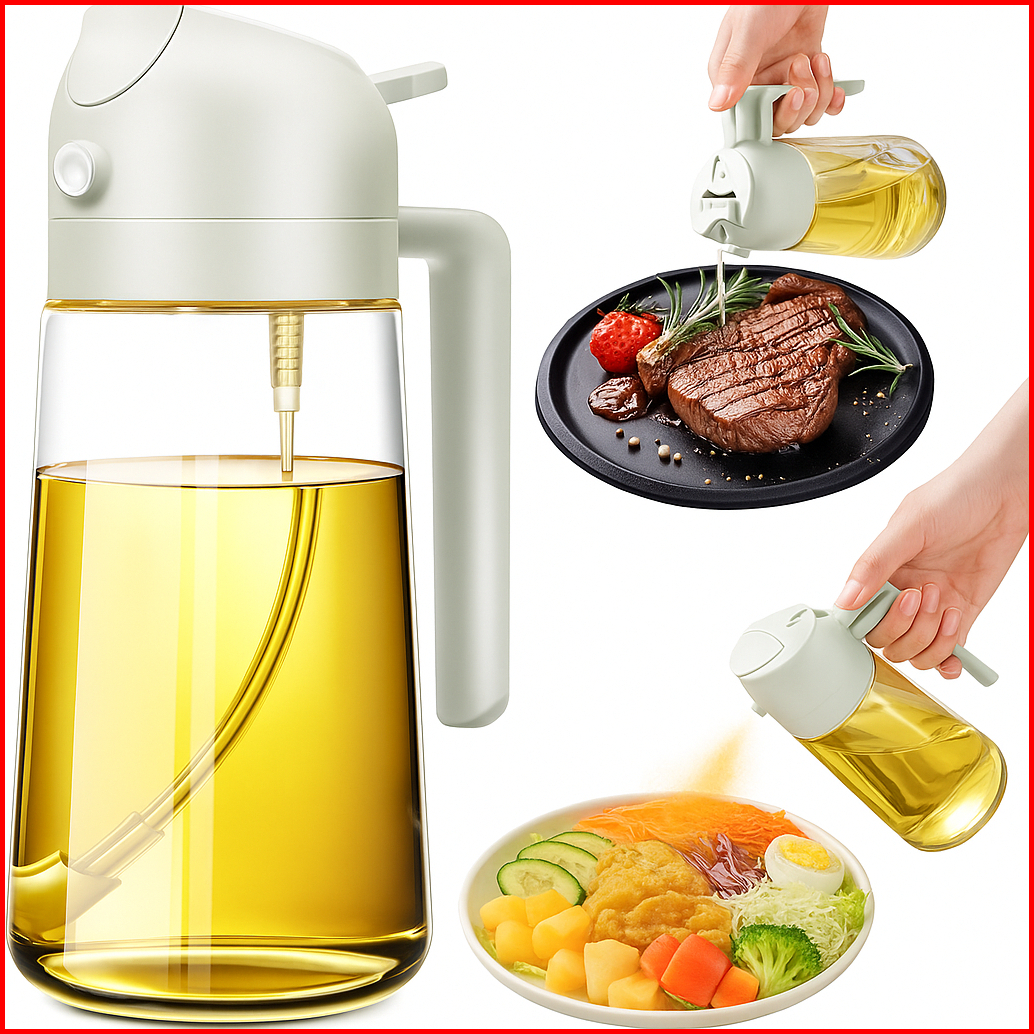 Botol Minyak Spray Pray 2in1 470ml Botol Minyak Goreng Semprot Tempat Minyak Kaca Serbaguna 2in1