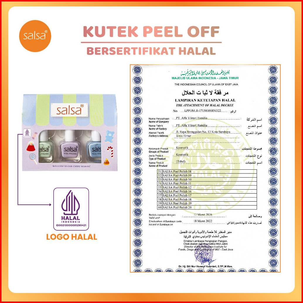 Salsa Kutek Halal Peel Off Polish - Kutek Halal Peel Off Lupas Breathable Hijab Friendly Isi 3 Kutek Tahan Lama Tidak Mu
