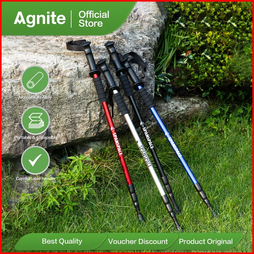 Agnite Spanspace Tongkat Gunung Lipat Tracking Pole Trekking Hiking Aluminum Alloy 65-135 Cm Vs4061
