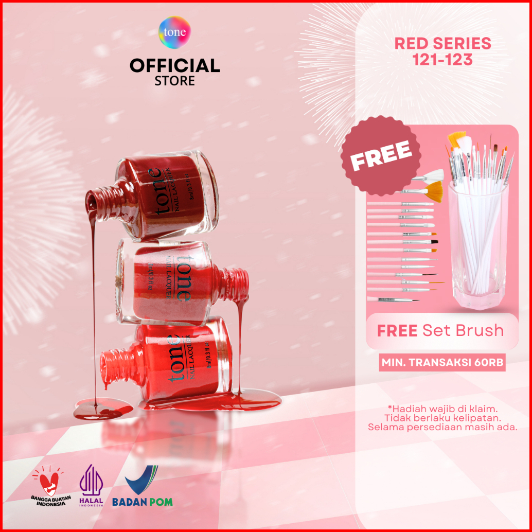 Tone Nail Lacquer Red Series 121-123 Cat Kuku Kutek Merah Nail Polish Kutek Halal Muslimah