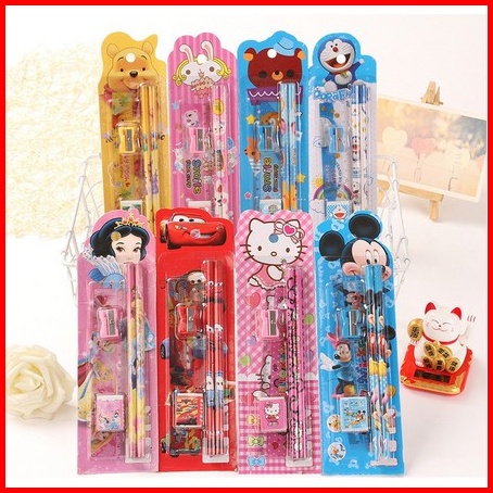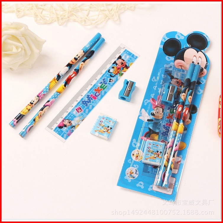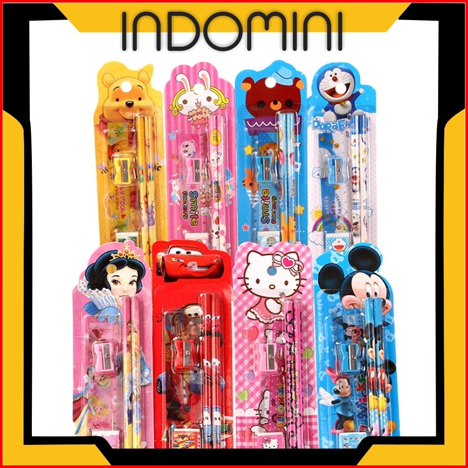 Indomini Stationery Set 5 In 1 Alat Tulis Anak Sekolah Penghapus Penggaris Pensil Serutan Karakter Lucu S004