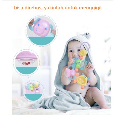 MAYY Baby Teether Rattle Teething Kit Mainan Gigitan Bayi Gigitan Bayi Teether Mainan Bayi b - 7Pcs blue box