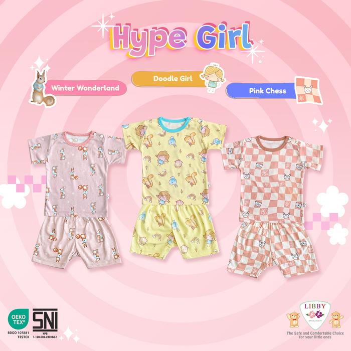 Libby 3Set Setelan Pendek Oblong Kancing Pundak baju bayi anak - hype girl pendek 2L