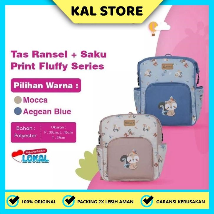 Snobby Tas Ransel Saku Print Fluffy Series SBT0574 / Tas Perlengkapan Bayi Ransel / Tas Ransel/KAL STORE/USIA/KEPERLUAN