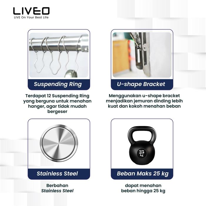 Jemuran Dinding Baju Stainless Steel Liveo LV399 Jemuran Lipat Gantung - LV399