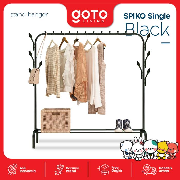 [c06] Goto Spiko Rak Besi Gantungan Stand Hanger Baju Pakaian - Hitam SINGLE