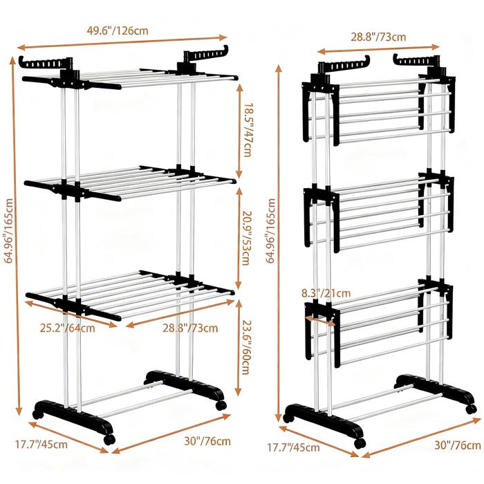 Rak Handuk Rak Jemuran Stainless Steel 4 Susun Beban 60kg & Anti Karat Rak Jemuran Lipat - 4 Susun 73CM-Hitam