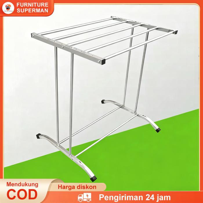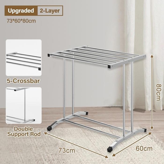 Jemuran Handuk stainless steel Rak Handuk Jemuran kamar mandi towel stand Portable kuat kokoh - 5 pole 2 laye