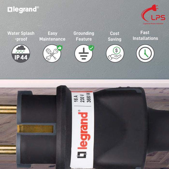 Legrand Steker Colokan Karet Hitam Anti Air 2P 16A - 050196