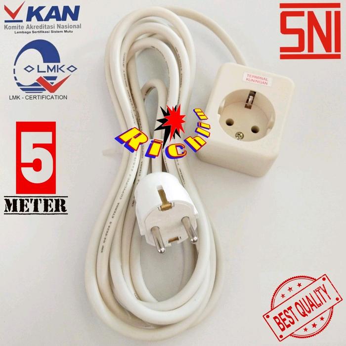 Stop Kontak Uticon 1 2 3 4 5 6 Lubang + Steker Bulat Broco + Kabel Eterna 2x0.75mm - 1 Lubang
