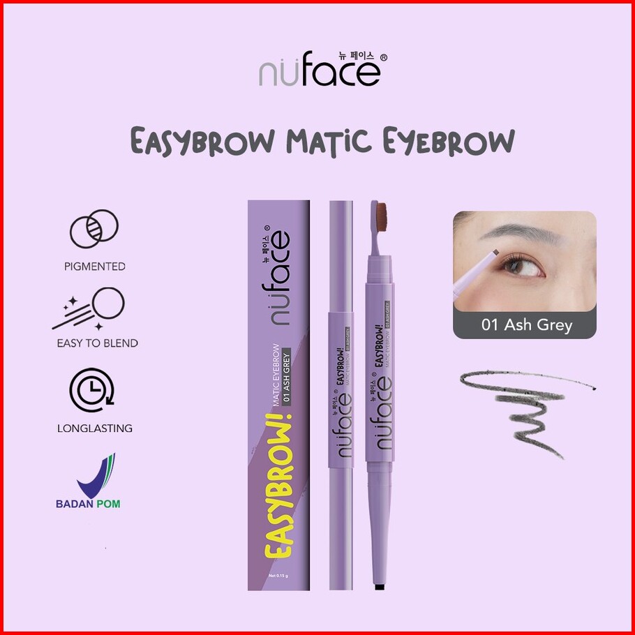 Nuface Easybrow Matic Eyebrow Pensil Alis Warna Ash Grey Dark Brown