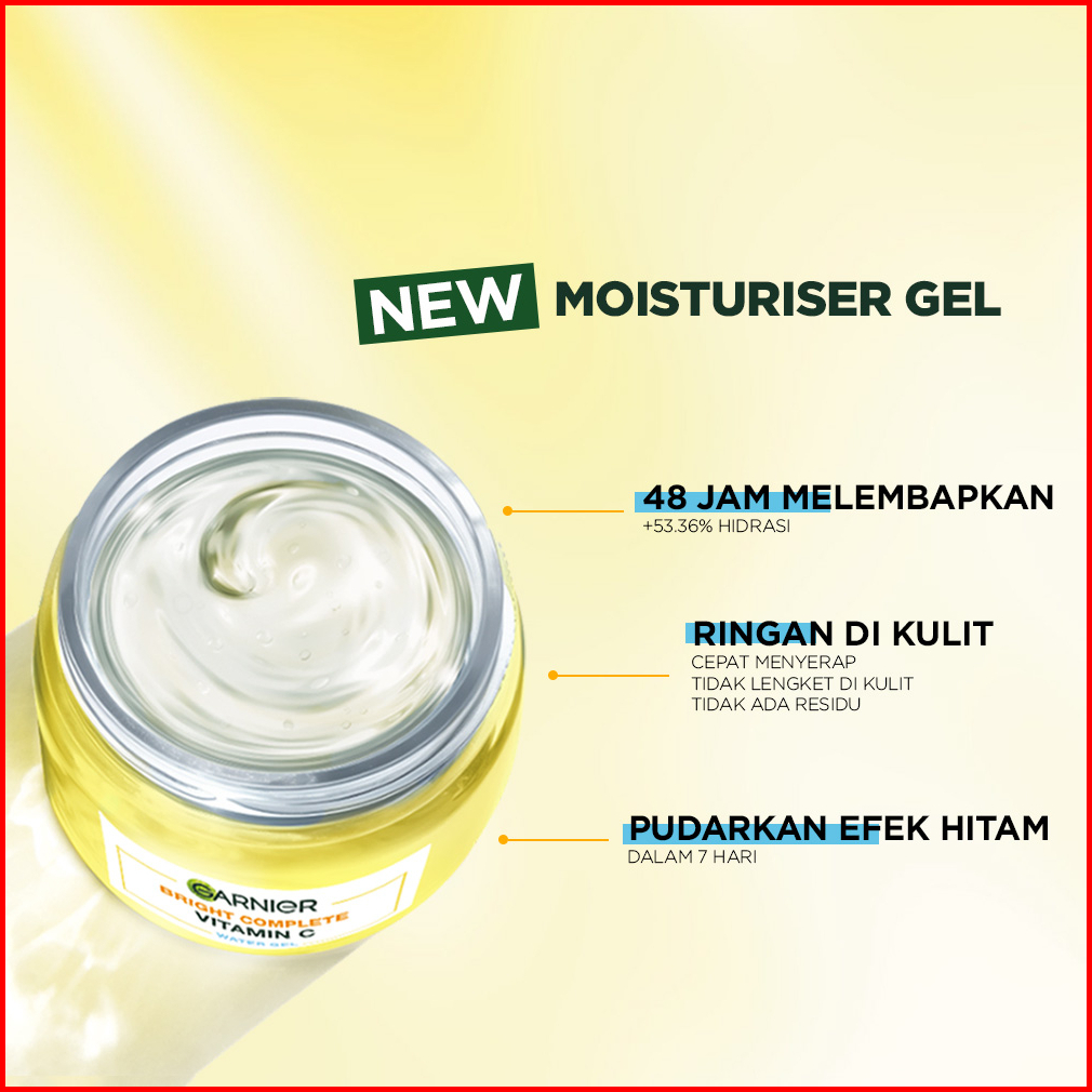 Paket Hemat Isi 2 Garnier Bright Complete Vitamin C Ceramide Barrier Moisturizer Gel 50ml - Water Gel Skincare Pelembab