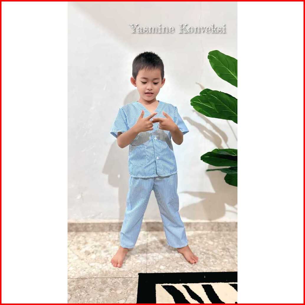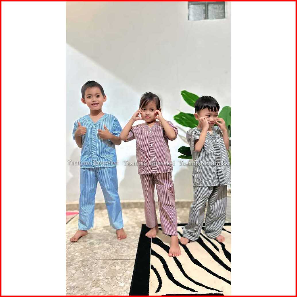 Yasmine Promo Piyama Anak Tanpa Kerah Usia 1-9 Thn Piyama Salur Bahan Lembut