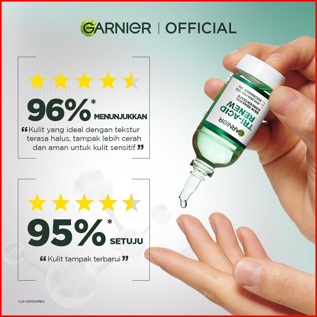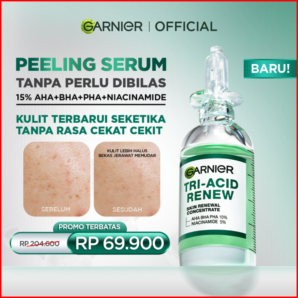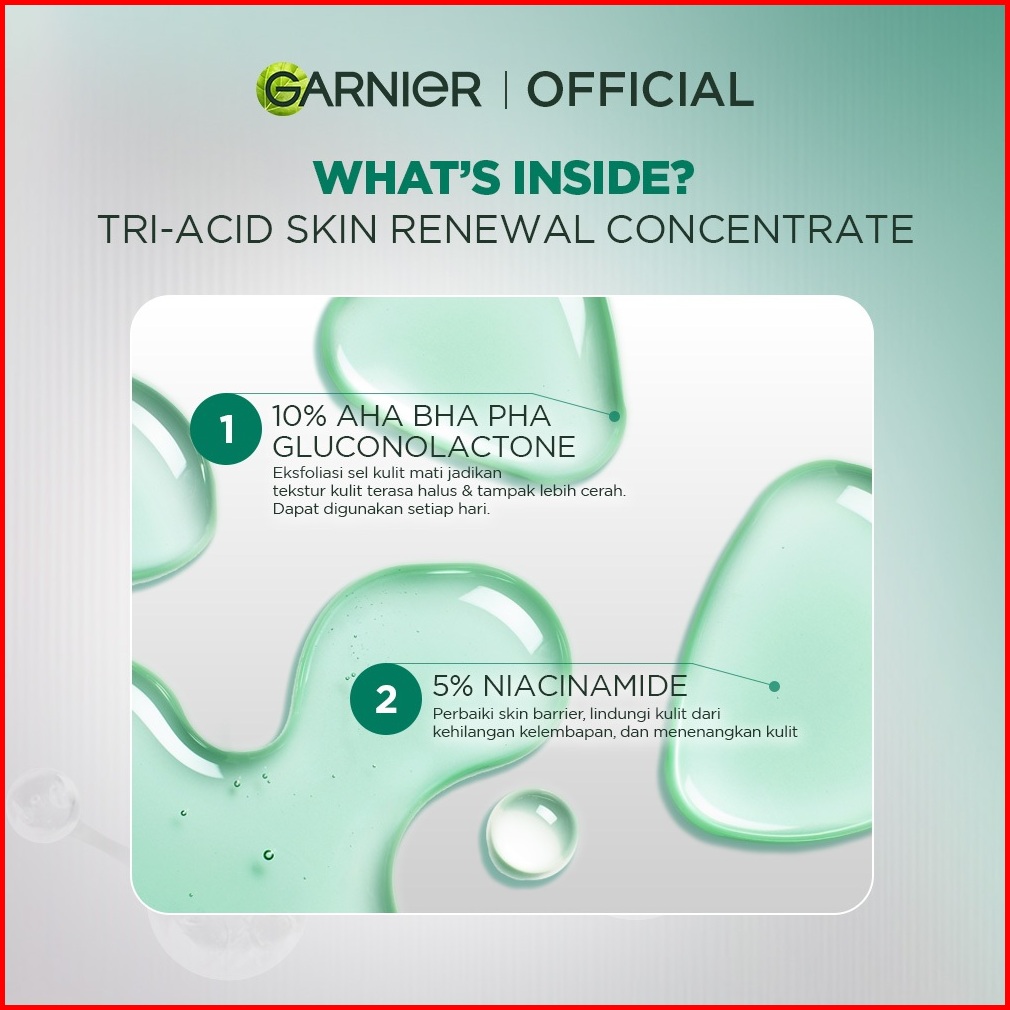 Garnier Tri Acid Renew Peeling Serum Exfoliasi Wajah - Glass Skin Aha Bha Pha 10 Niacinamide 5 Skincare Exfoliating Rene