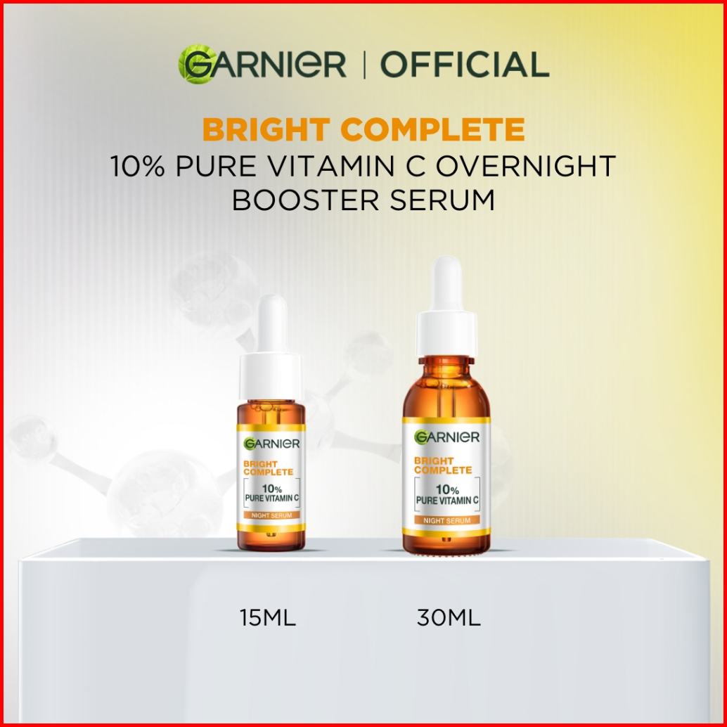 Garnier Serum Bright Complete Overnight Pure Vitamin C Serum 15ml 30ml - Skincare Mencerahkan Wajah Vitamin C Cocok Untu