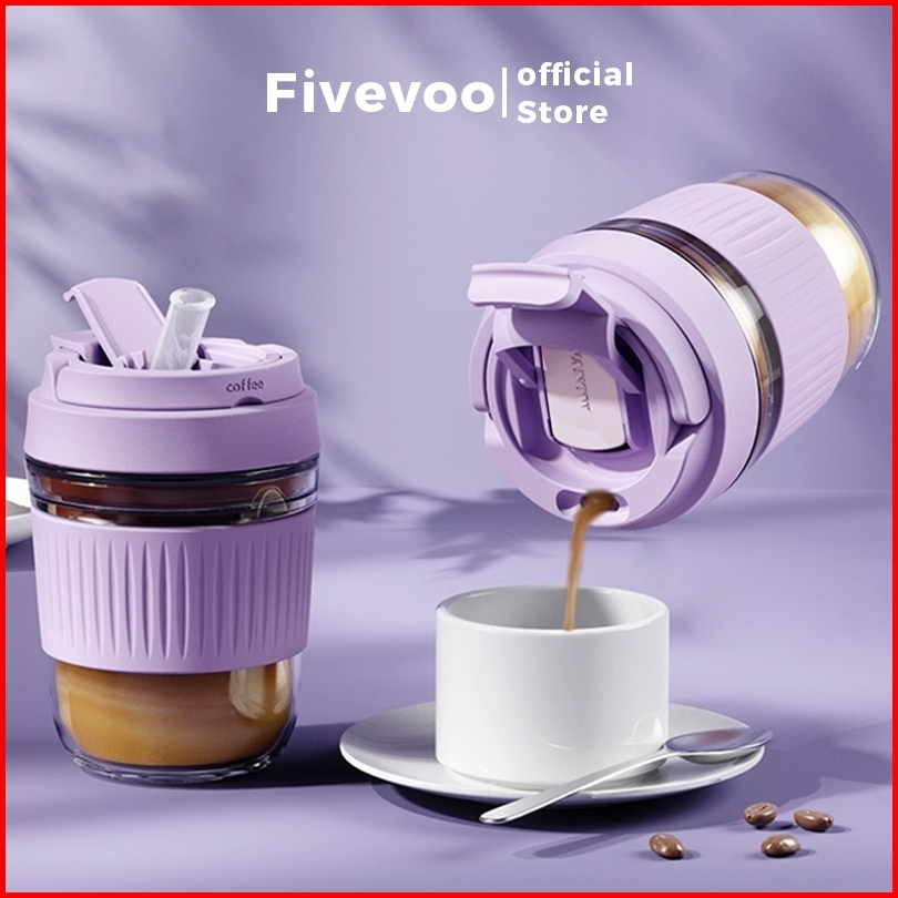 Fivevoo Tumbler Kaca Anti Tumpah Gelas Kaca Gelas Kopi Gelas Serbaguna Gelas Travel Tumbler Kopi