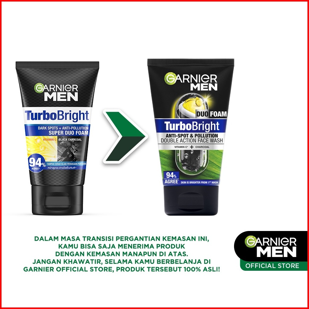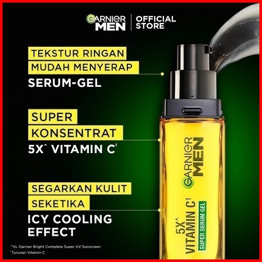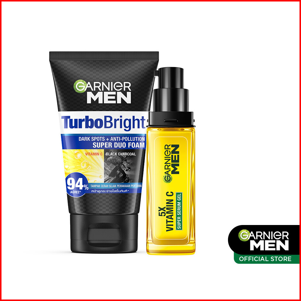 Garnier Men Paket Skincare Mencerahkan Turbo Bright 5x Vitamin C Super Serum Gel 30ml Super Duo Face Wash 100 Ml - Mence