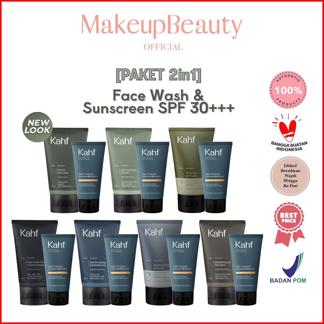 Paket 2in1 Kahf Skincare Untuk Pria Face Wash 100ml Sunscreen Spf 30