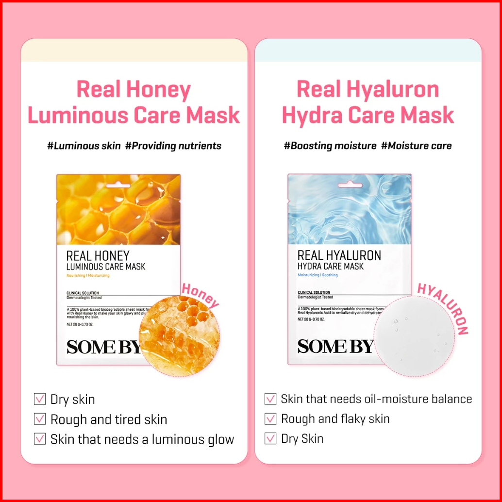 A10310 - Mask-Aloe, A411 - Mask-AHABHA, A4126 - Mask TeaTree, A286 - Mask-Matcha, A421 - Mask-Vitamin, A243 - Mask-Hyalu, A412 - Mask-Honey, A253 - Mask-Cica, SBM Care Mask-Snail, A265 - Mask-Glutha