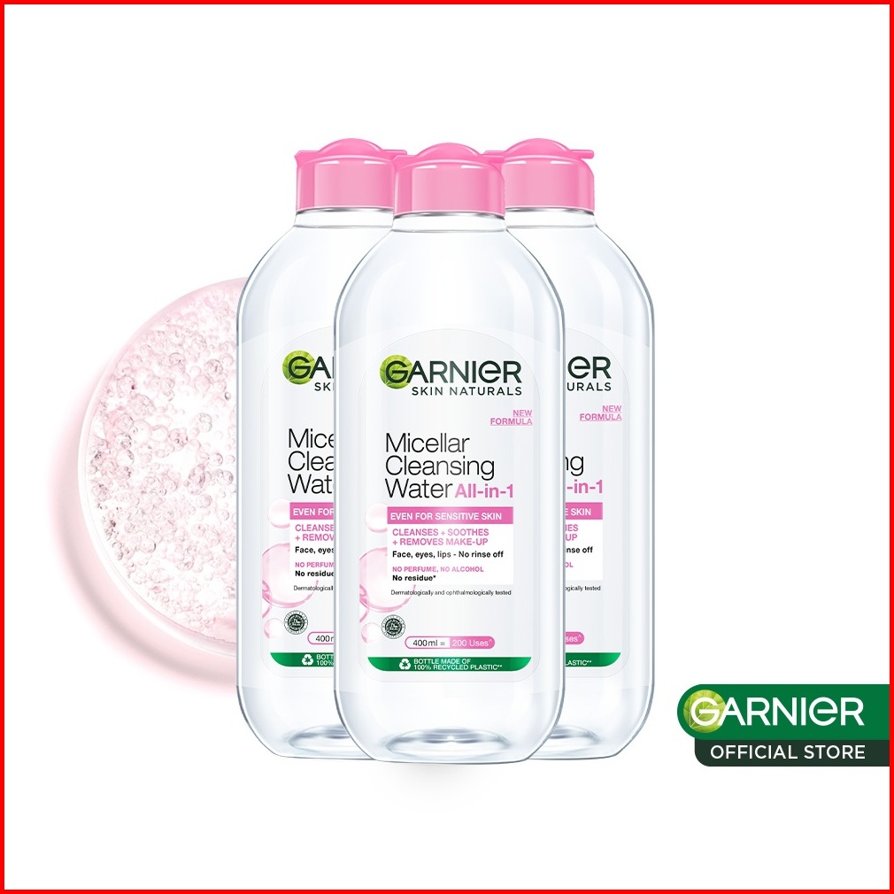 Paket Hemat Isi 3 Garnier Micellar Water Pink 400ml Skincare Cleansing - Pembersih Wajah Make Up Pink Blue Oil Vitamin C